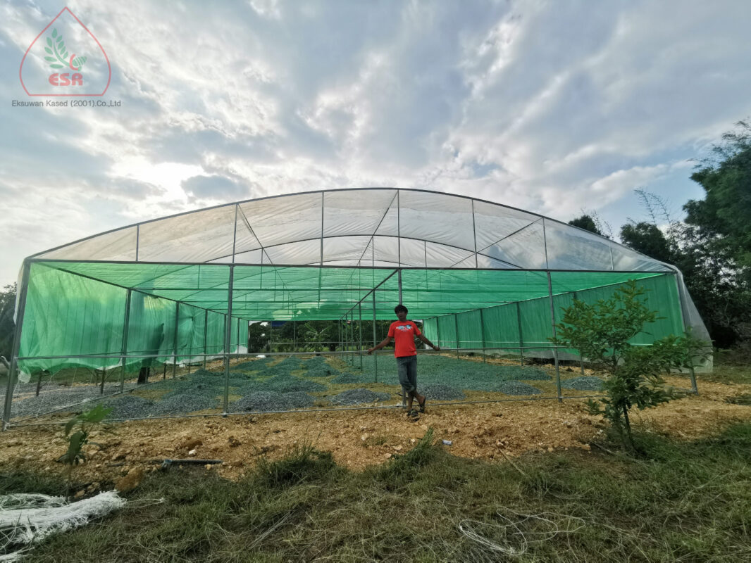 ส่วนใหญ่แล้ว ด้านข้างโรงเรือน จะนิยมใช้ “มุ้งกันแมลง”