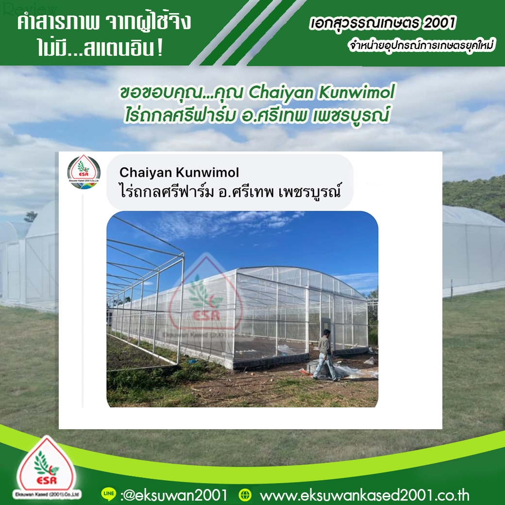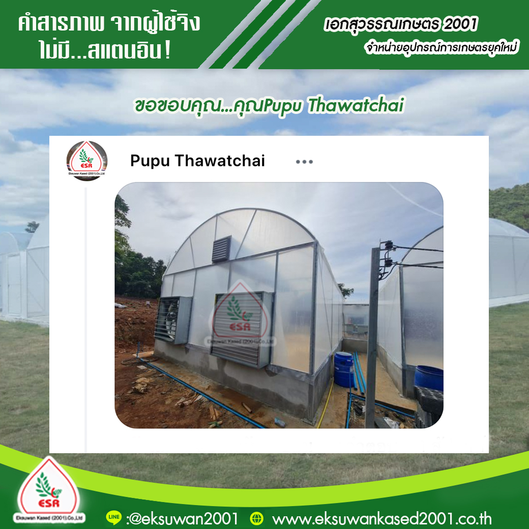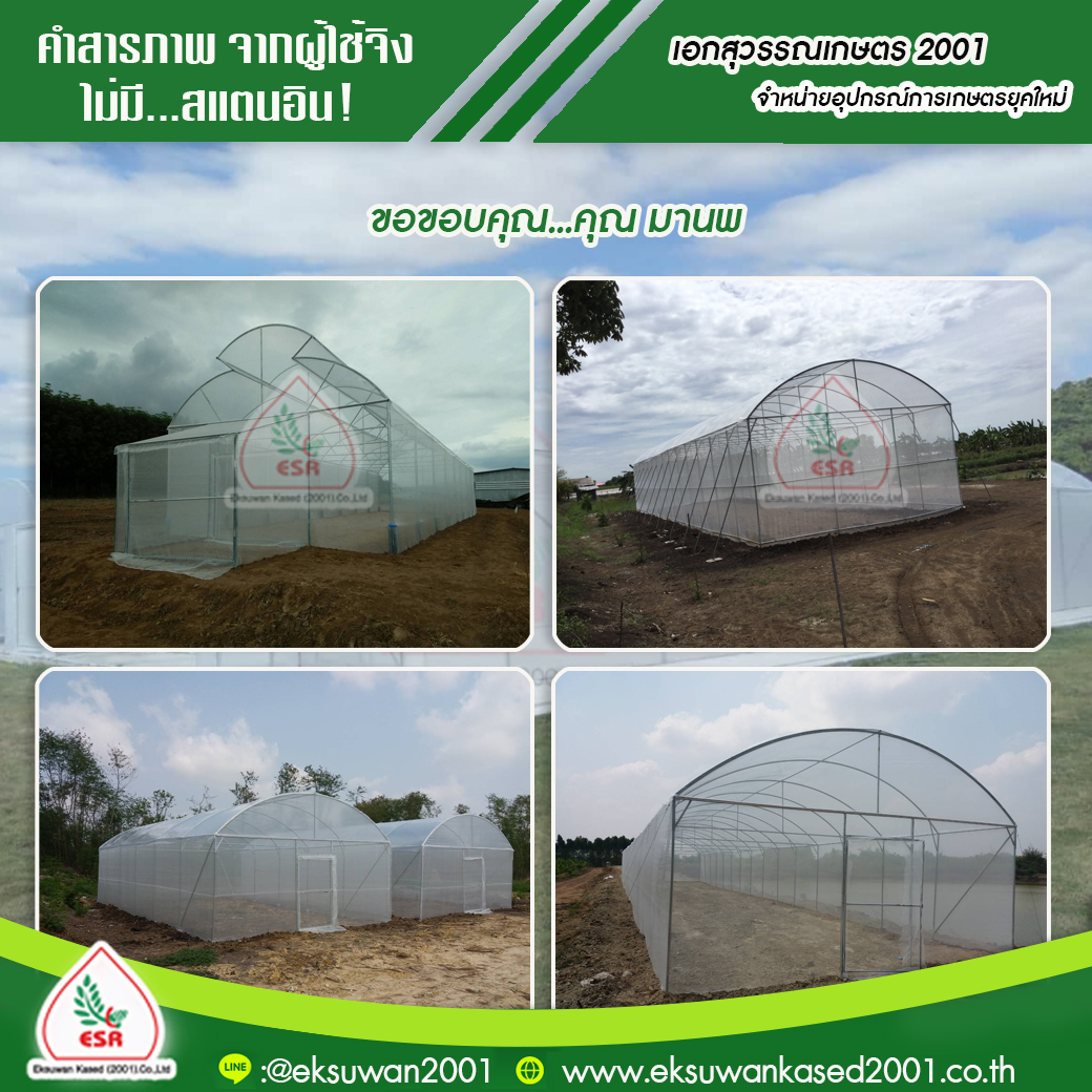 คุณ มานพ ผู้รับเหมา ขอบคุณที่อุดหนุน พลาสติกโรงเรือน และ อุปกรณ์โรงเรือน ครบชุด ไปสร้างโรงเรือนให้ลูกค้านะคะ