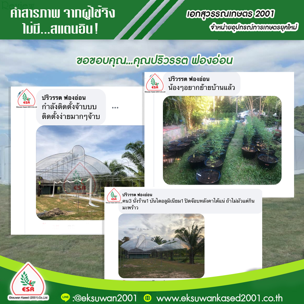 คุณ พิมพ์กมล ขอบคุณที่อุดหนุน พลาสติกโรงเรือน และ อุปกรณ์โรงเรือน ครบชุดนะคะ