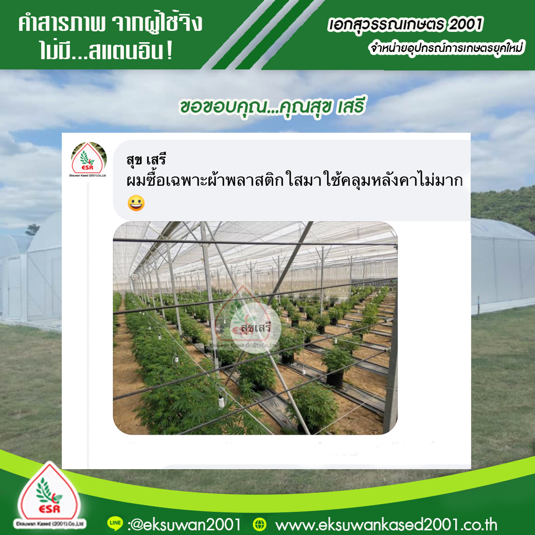 อุดหนุนไปพลาสติกโรงเรือนไปทำโรงเรือนปลูกผักหลายโรงแล้ว ขอบคุณมากค่ะ คุณ สุวิมล หวงธนะภัณฑ์