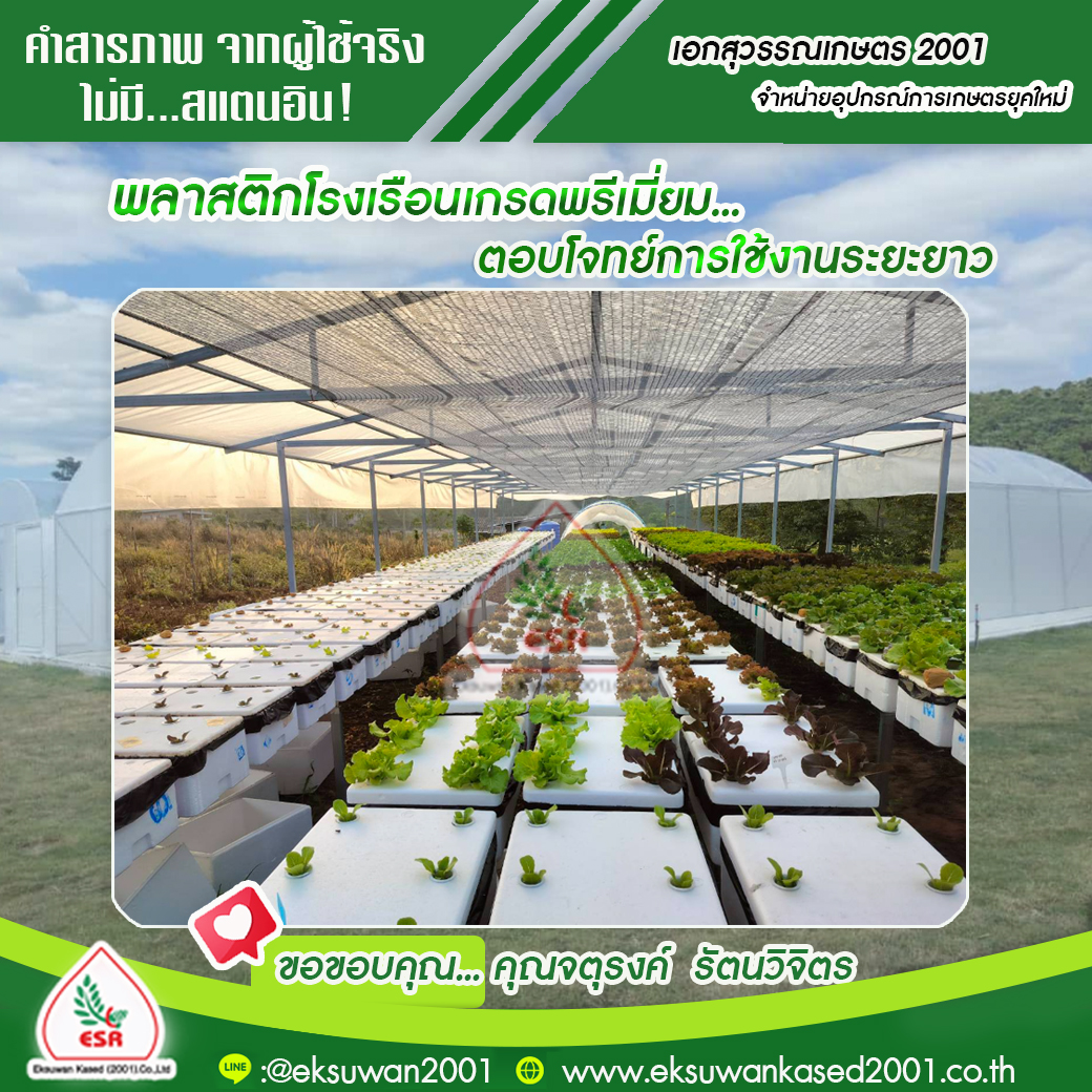 ในตลาดนั้นพลาสติกคลุมโรงเรือนจะมีหลายเกรด แต่เอกสุวรรณเกษตร(2001) เราจะจำหน่ายพลาสติกโรงเรือนแต่เกรดที่ เพื่อตอบโจทย์การใช้งานระยะยาวของลูกค้ามากที่สุดค่ะ